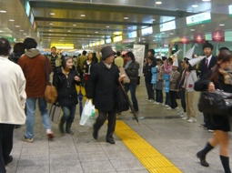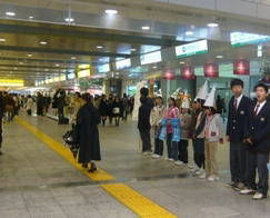 募金です。8人ぐらいで一組になり、それぞれ改札口と駅ビルに