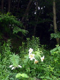樹木の下に、ひっそりと華やかに咲く山百合は