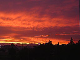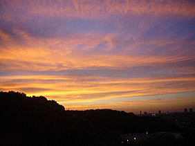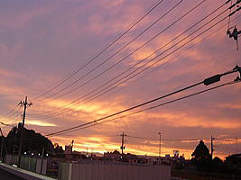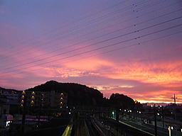 | ↑南多摩駅で。雨も上がっていて、素晴らしい夕焼けでした (孫の所に出かけた帰り、PM6時55分頃) |