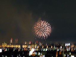 部屋、ベランダから、花火が見えます。花火の写真は難しい。 |