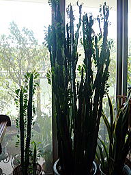 <トウダイグサ科、ユーフォルビア属の多肉植物。柱サボテンに似ている。