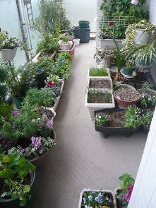 全体に風が強いベランダで安心して植えられるのは、丈夫な園芸用の植物中心になります。