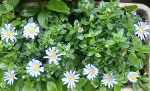 ・挿し木をして増えたマーガレットの根元に、狭いところでも良く育つ