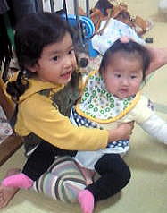 3歳と赤ちゃんは、お互い女の子同士とても気に入り関心をもったようです。