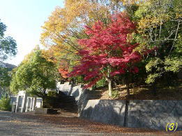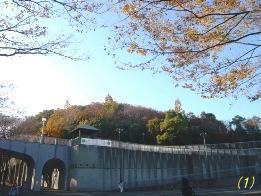 (1)城山公園の広場から、スーパーの二階に続く歩道橋