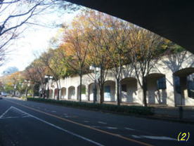 (2) アーケード風の歩道、子供たちの描いた壁画が飾ってあります。