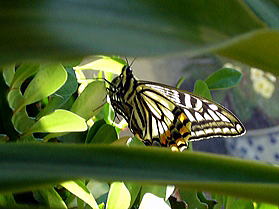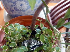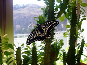 ふと気がつくと あげは蝶が部屋の中の観葉植物の間を飛んでいました。