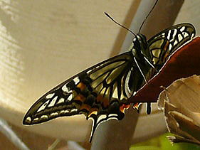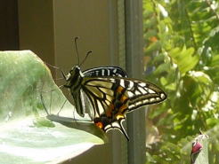 アゲハ蝶は、少しでも日が差し込むと動き出しますが、後はひたすら羽を