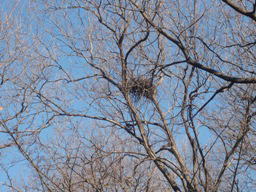 ←枯れた木の枝に大きな鳥の巣(マンション裏手の雑木林) |
