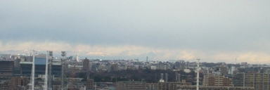今日は寒い日です。このあたりは空はどんよりと曇っているのに遠くの秩父の山並みや浅間山(?)