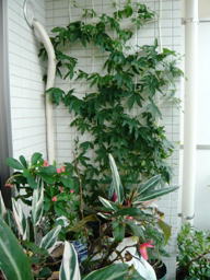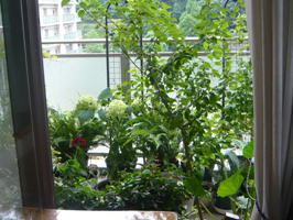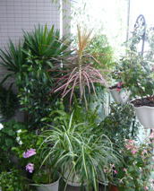 鉢が狭くなると大きな鉢に植え替えてきましたが、植物が元気に大きく育ち、ジャングルの