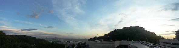 今朝はよく晴れていたので、しばらくぶりに最上階の14階まで行って日の出の写真を