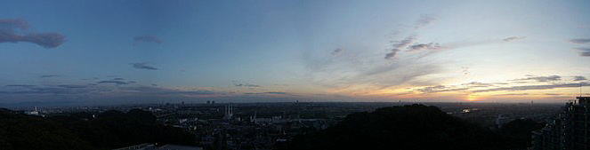 右側のビル群のシルエットは、渋谷方面です。新宿は山の陰になり