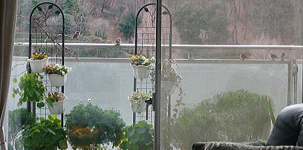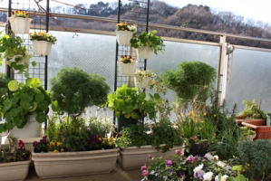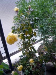 ミニリンゴを、ベランダの部屋側においてある木デュランタに