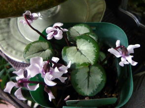 実家の近くの花屋さんで、とても小さな可愛いシクラメンが