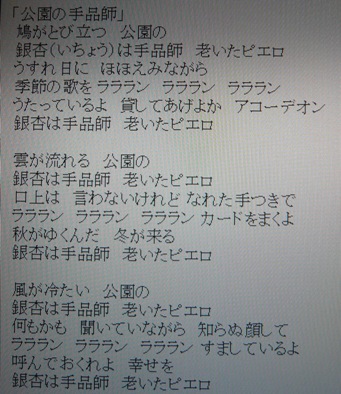 初めて聞いた「公園の手品師」という歌も とてもよかった!