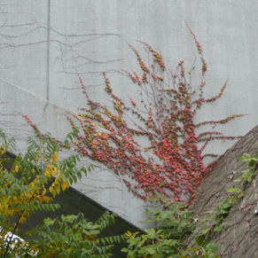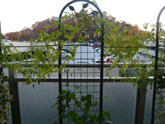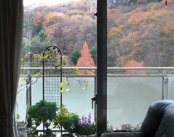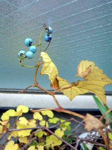 今年は、ゆすらうめもまだ葉が落ちないでなんだか元気、山葡萄の葉の紅葉もとてもきれいです。