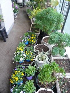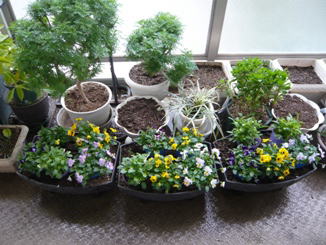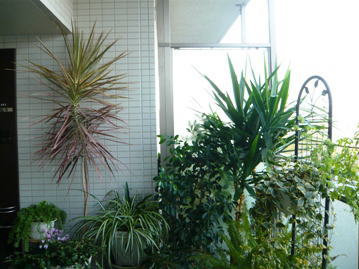 右側のユッカは、3℃以上と言うことですが、何年もポーチで元気に越冬しています。 |