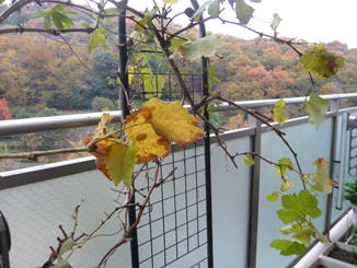 (2)ブドウの葉は枯れたようで綺麗に紅葉していません。今年は1つも実がならなかった。