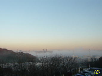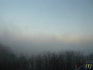 (1)夜から霧でベランダの目の前まで真っ白でしたが、