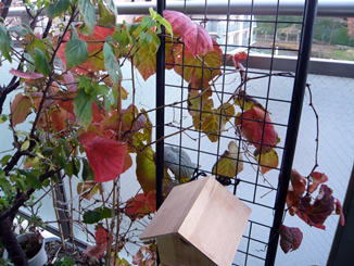 (1)山ブドウの葉が綺麗に紅葉しています。今年も実はなりませんでした。