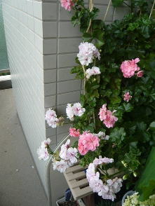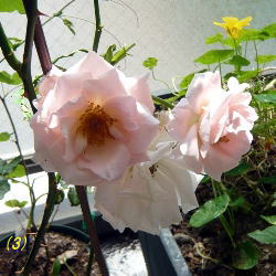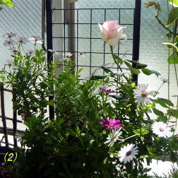 (3)挿し木をして2年目に咲いたバラです。花色は初めは淡いピンクですが、白くなります。