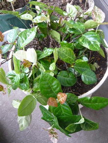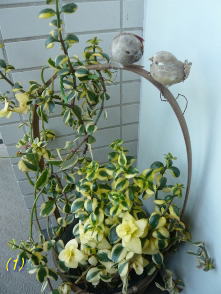 くすんだ緑色の葉で、育ちも悪かったので、去年秋に2鉢に分けて、植え替え、刈り込んで