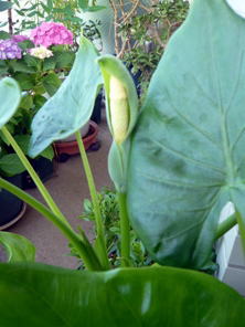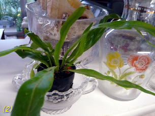 (1) 新しくでてきた葉の緑のストライプがないので、まるで花がさいた様です。