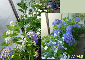 どちらに石灰を与えていいかわからないので何も与えずにいたら今年は、皆ピンクっぽい色になりました。
