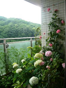 部屋の中から一番よく見えるところなので、花を置きたいので、その物干しは使っていません。