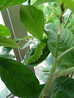 しまいますが、アゲハの幼虫はじっとしていて、あまり葉を