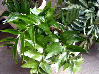 (1)はオシダ科の オニヤブソテツ(?)、ヤブソテツ(?)