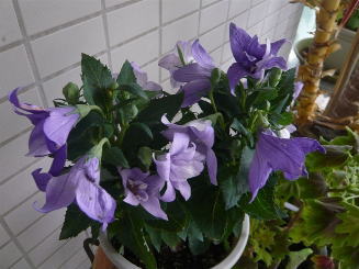新宿駅構内のお花屋さんで買ってきた八重の桔梗