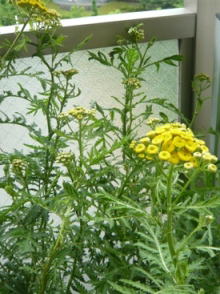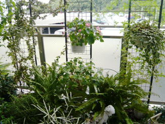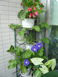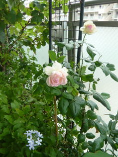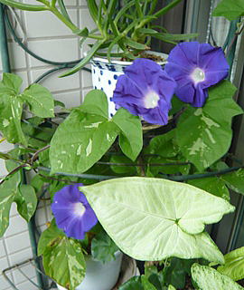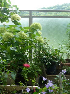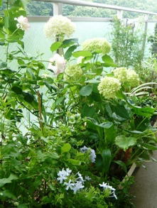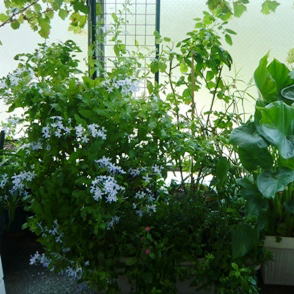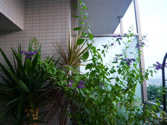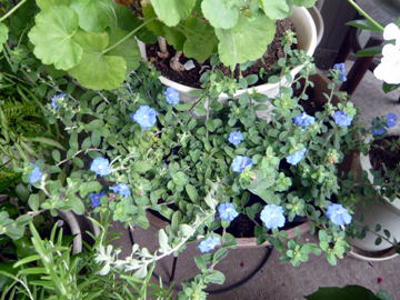 今年は、桔梗科のカンパニョーラの鉢のまわりに