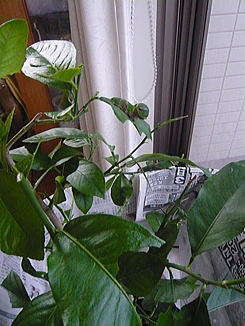 この柑橘の木の鉢は裏のベランダ(東側)においてあるの