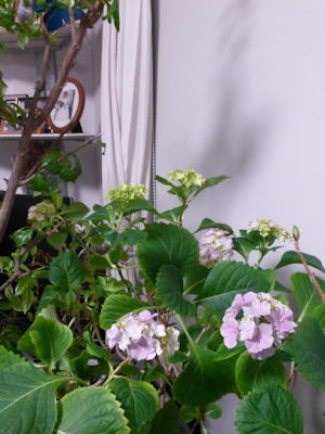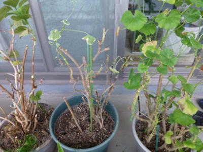 左は部屋に入れてあった斑入りの葉のゼラニウムです。