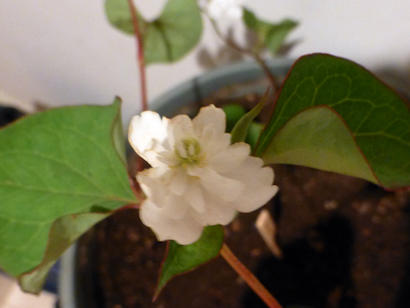 かわいい花、なんの花かなとみると、なんと八重のドクダミでした。