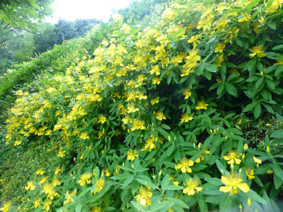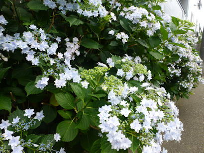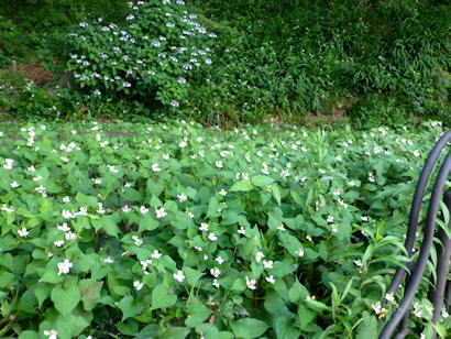 次のコーナーの植え込みの根元に丸い白い花が咲いているので、