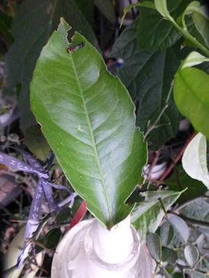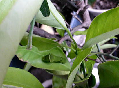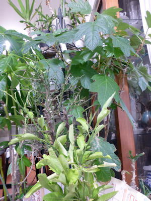 工事のない日にベランダに出していますが、貧相な枝ぶりで花も咲きません。