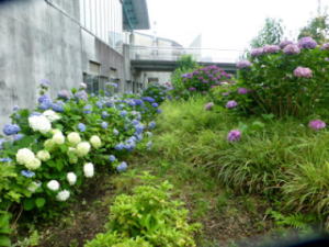 帰り道、是政橋を渡ると引き続き歩道があり、ツツジの植え込みがつづいています。