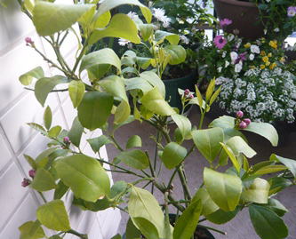 おととしは別な鉢に埋めておいた金柑らしい柑橘の木に花が咲いたのですが、