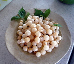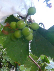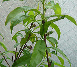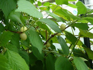 (2)桃の実・・・種を埋めてから5,6年たった今年初めて花が咲き、青い小さな実がたくさん
