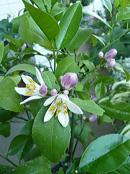 (1)柑橘の花・・・種を埋めておいたところ芽が出てから、5年ぐらいたち初めて花が咲きました。