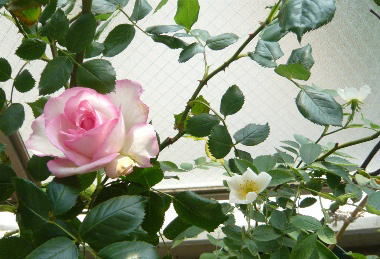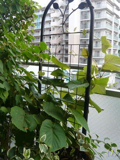 ポーチやベランダの壁に這わせようと思っているのですが、まだ上まで伸びていません。