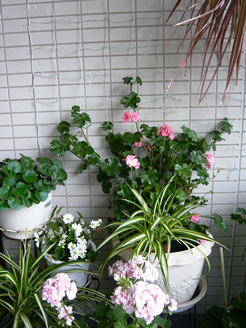 アイビーゼラニウムは、壁に這わせたりハンギングにできて普通のゼラニウムより雰囲気があります。