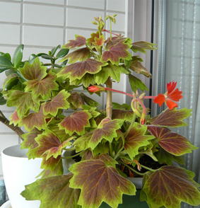 ヨーロッパの窓辺によく植えられているので、とても洋風の花で、はでな感じがしますが、