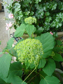アナベルは今年伸びた枝に花が咲くので、たくさんつぼみが出来ています。 |